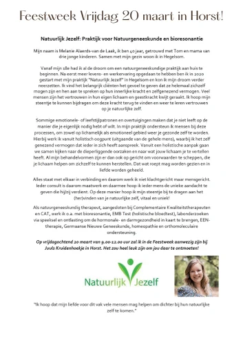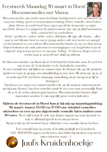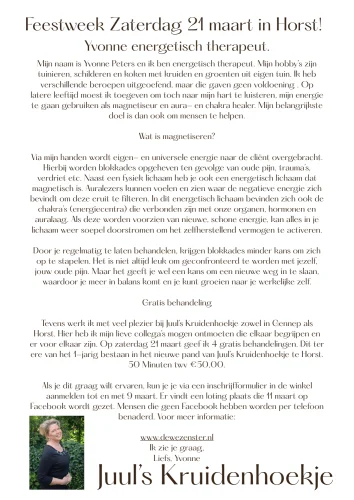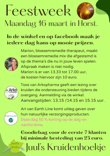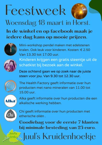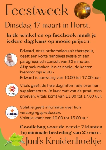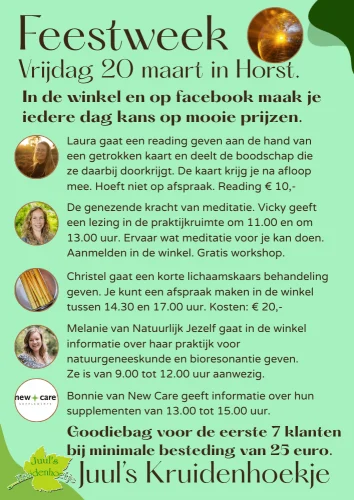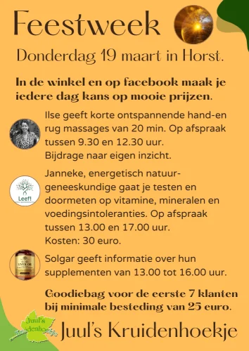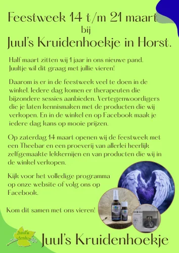 Feestweek Juuls Kruidenhoekjein Horst  14 t/m 21 Maart 2026